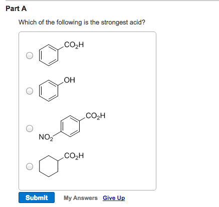 Solved Part A Which Of The Following Is The Strongest Acid Chegg Com
