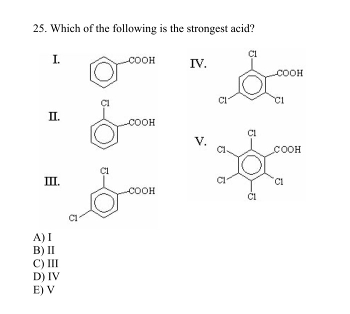 Solved 25 Which Of The Following Is The Strongest Acid Chegg Com